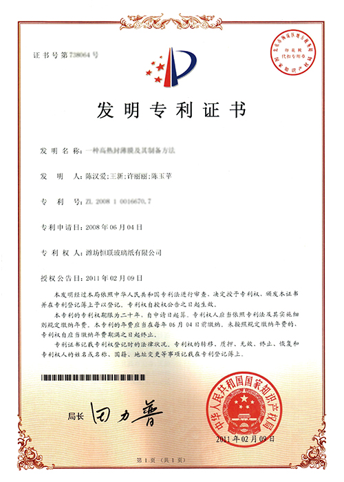 新型溶劑型涂布玻璃紙——被列入“2008年山東省重點(diǎn)技術(shù)創(chuàng)新項(xiàng)目計(jì)劃”(魯經(jīng)貿(mào)技字[2008]157號(hào)),已通過山東省級(jí)科技成果鑒定。
