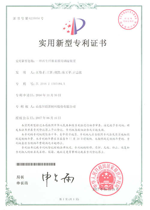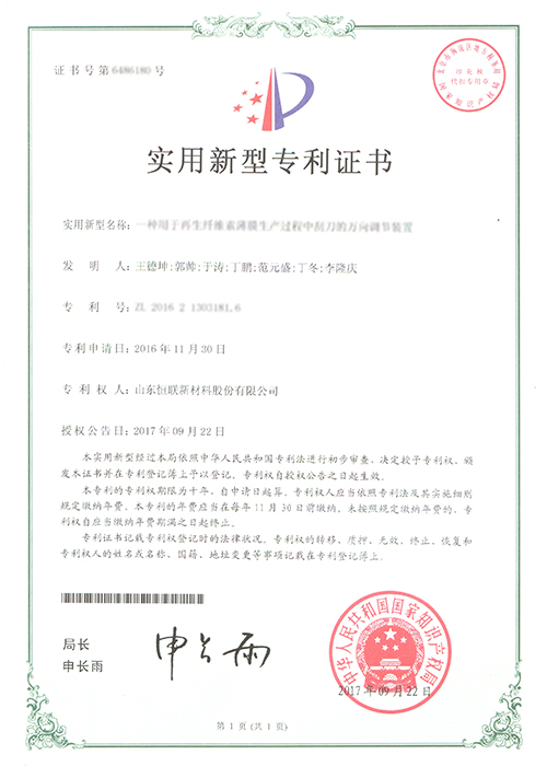 高檔再生纖維素膜抗粘增滑新工藝——被列入“2010年山東省第四批技術(shù)創(chuàng)新項(xiàng)目計(jì)劃” (魯經(jīng)貿(mào)技字[2010]592號(hào)),已通過山東省級(jí)科技成果鑒定。