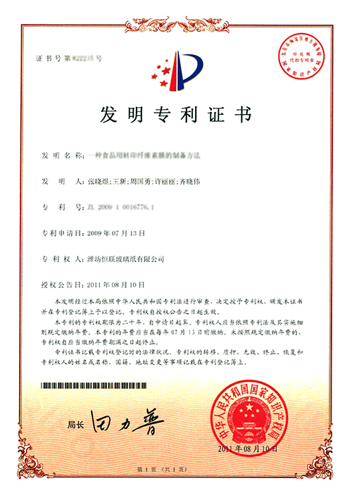 2009-2010年,公司主持制訂的《普通玻璃紙》(GB/T22871-2008)和《食品包裝用玻璃紙》(GB/T24695-2009)兩項(xiàng)國家標(biāo)準(zhǔn)得以頒布實(shí)施,奠定了公司在行業(yè)的領(lǐng)軍地位,標(biāo)志著企業(yè)技術(shù)實(shí)力又邁上了更高的層次。